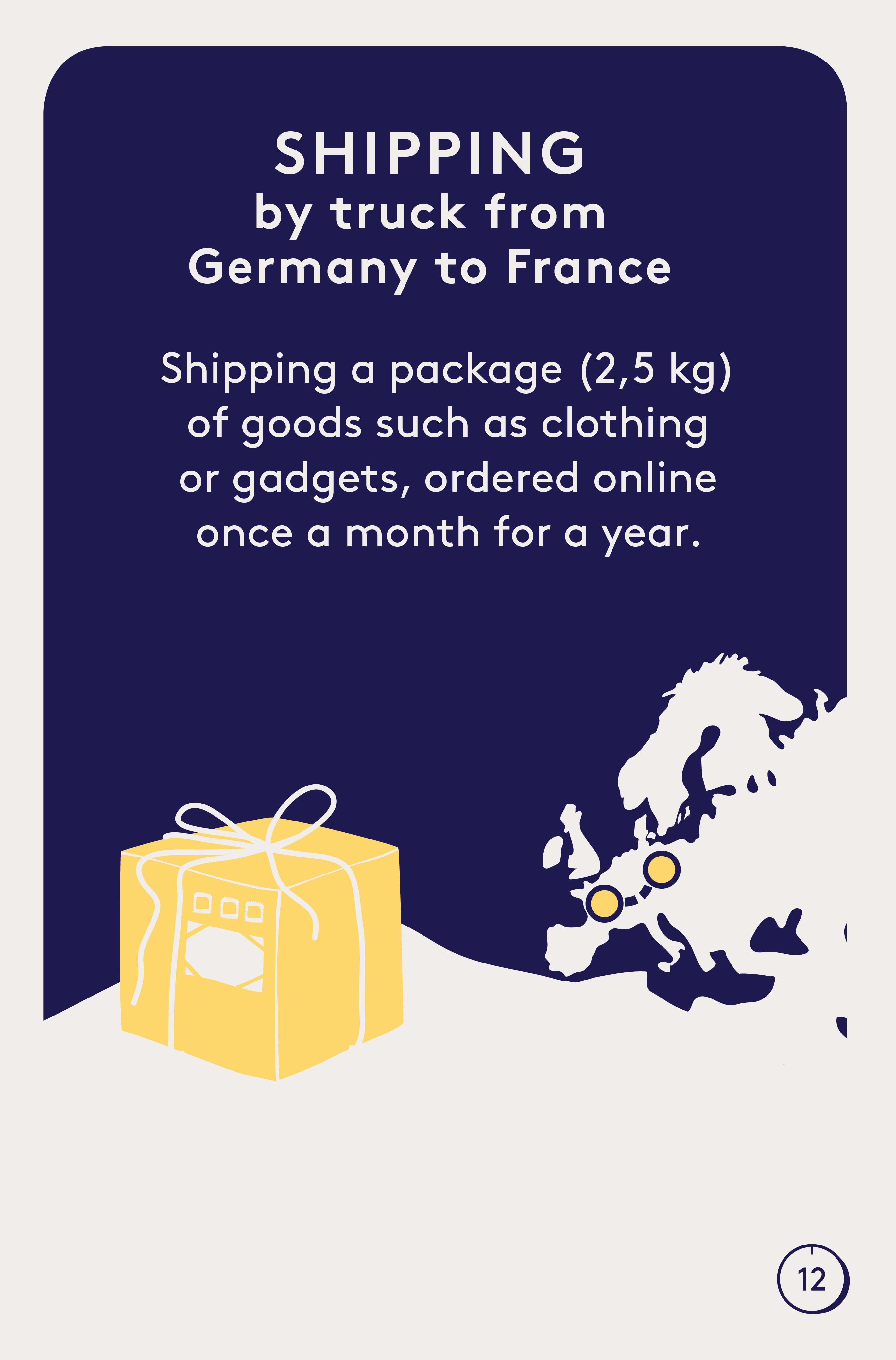 Shipping a package (2,5 kg) of goods such as clothing or gadgets, ordered online once a month for a year.